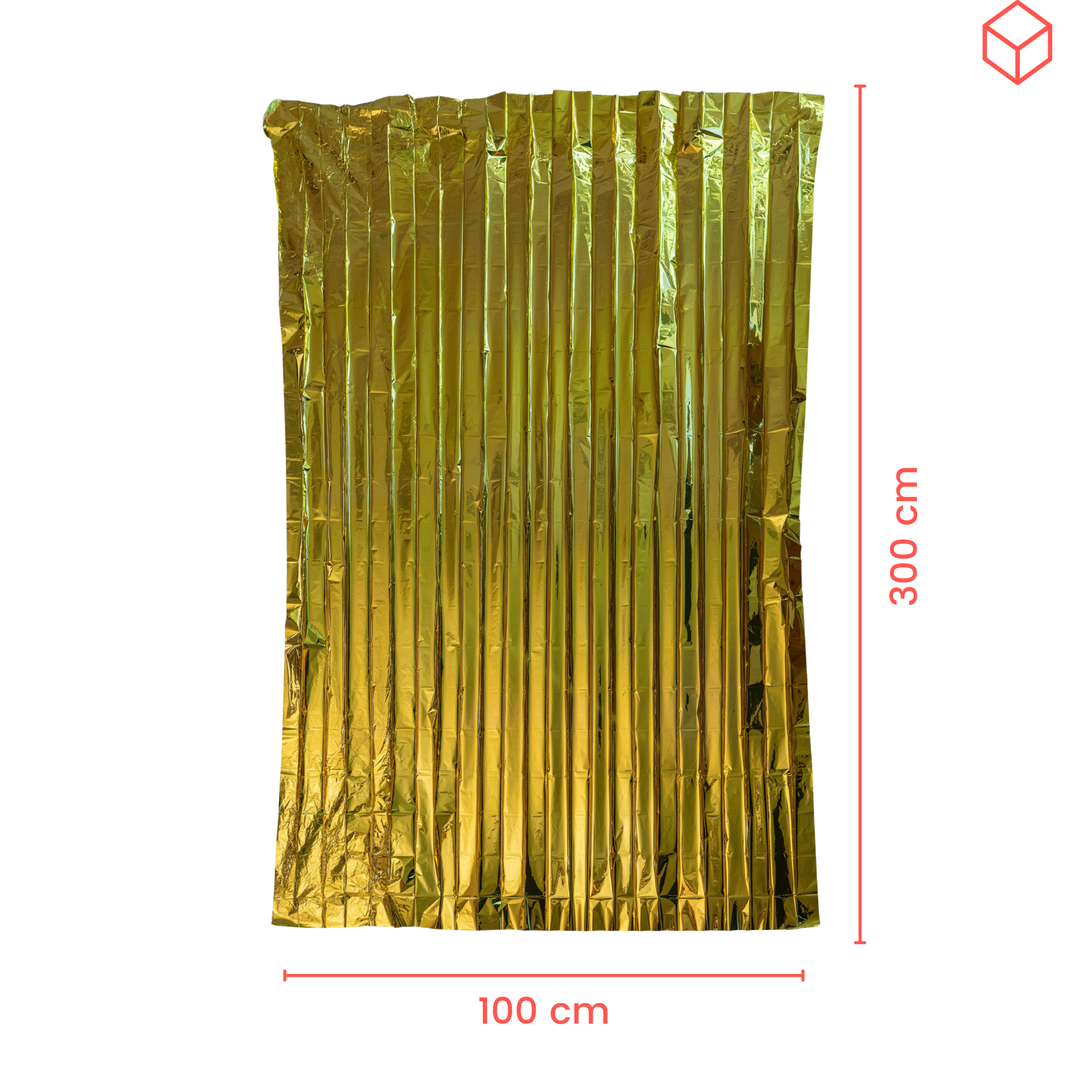 Su tamaño de 100 x 300 cm proporciona una cobertura amplia para envolver completamente el cuerpo, siendo ideal tanto para uso individual como para cubrir a más de una persona en emergencias.
